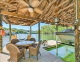 Dock has plenty of comfortable outdoor furniture, ceiling fans and lockable storage room w/ mini fridge and radio with outdoor speakers. 2 kayaks and 2 paddleboards available for use. Floating dock for boat tie-up, eletricity and lights. Steps that lead into the lake from the walkway on the dock!
