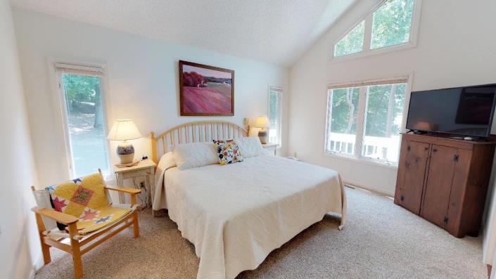 Living room & lower level family room boasts a gas fireplace & 65" flatscreen TV; each bedroom also has its own TV.