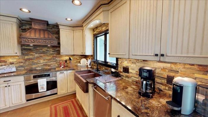 Main level offers beautiful, fully stocked kitchen (incl. auto drip and Keurig coffeemakers) -sure to please any cook! Dining table as well as stools at the breakfast bar to accommodate your guests!