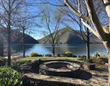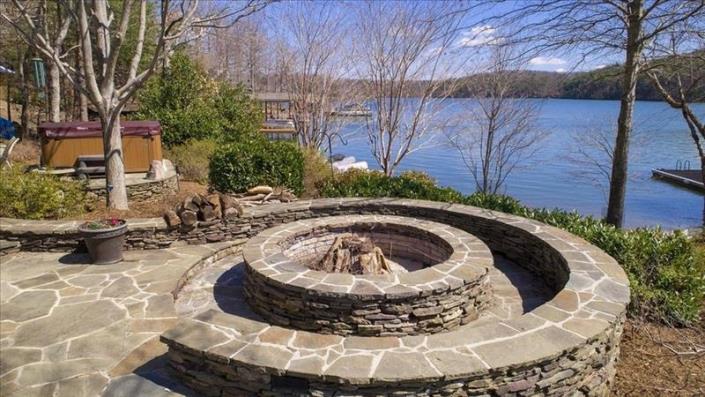 The lower level leads out to a wonderful patio area with park-like setting. There's a hardscaped fire-pit and HOT TUB, along with lots of outdoor furniture. AMAZING water and mountain views!